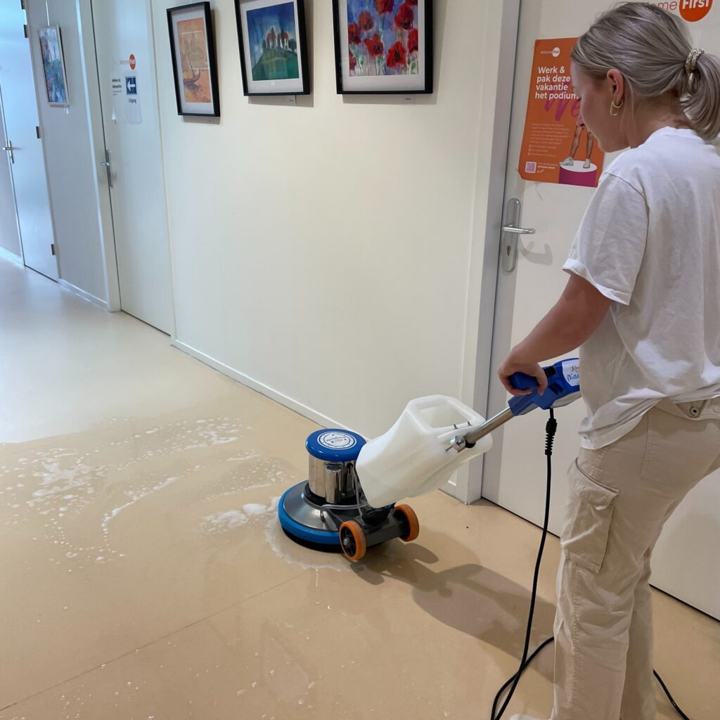 Het was een opdracht die ons met opwinding vervulde. Het buurtcentrum had ons ingeschakeld om de verouderde en verwaarloosde linoleum vloer nieuw leven in te blazen. Met jarenlang gebrek aan onderhoud zag de vloer er dof uit, vol met krassen en hardnekkige vlekken die weigerden te verdwijnen. We wisten dat we voor een uitdaging stonden, maar we waren vastberaden om deze vloer weer te laten stralen.