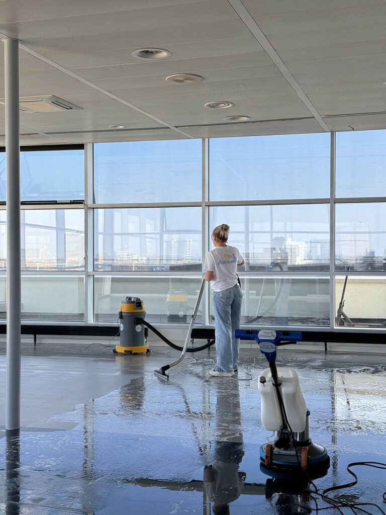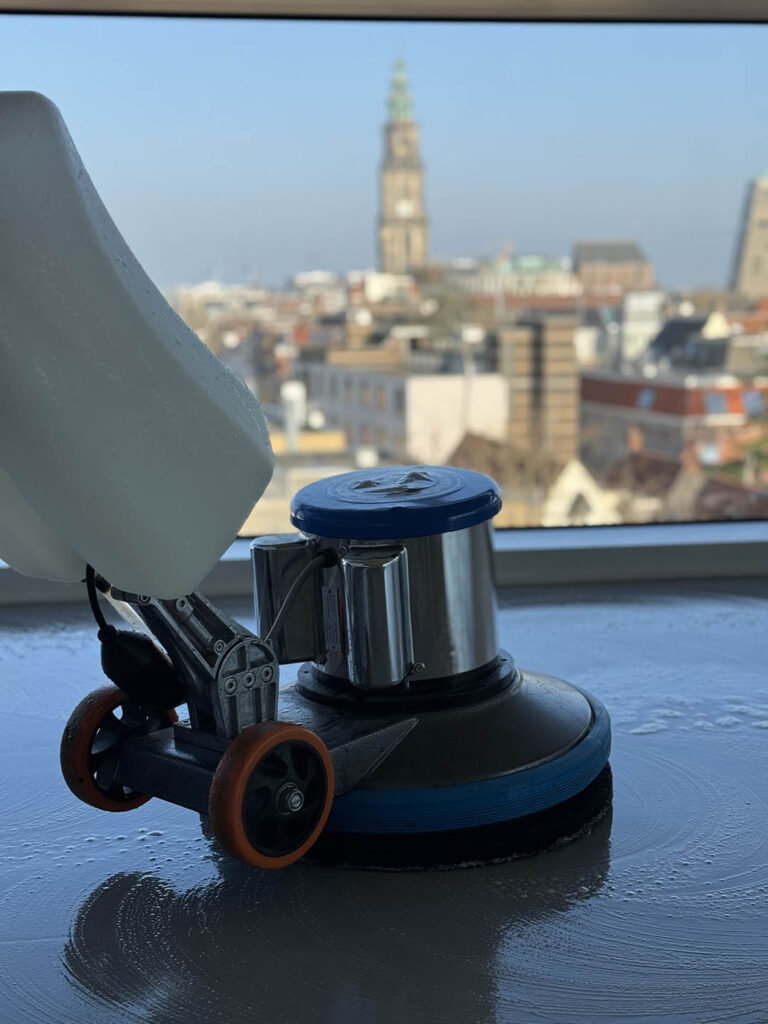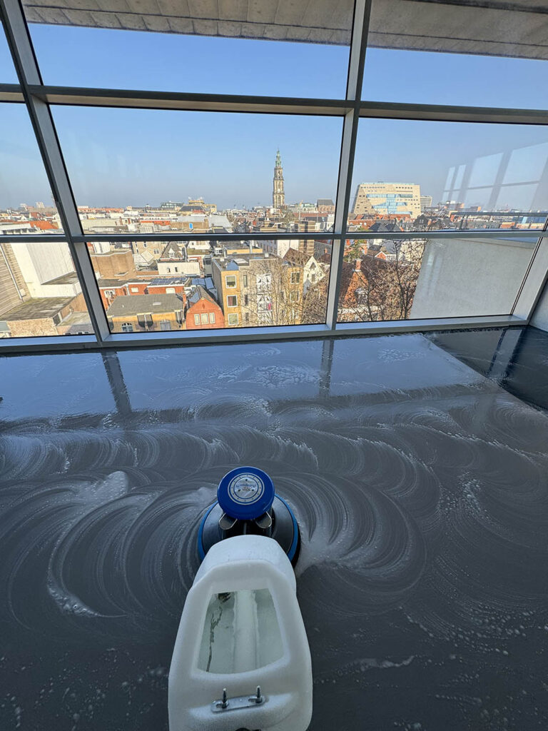 In een prachtig kantoorpand in het hart van Groningen hebben wij een uitgebreide vloerbehandeling uitgevoerd. De 400m2 linoleumvloer, die dagelijks intensief gebruikt wordt, vroeg om een professionele opknapbeurt om zijn nette, strakke uitstraling te herstellen.